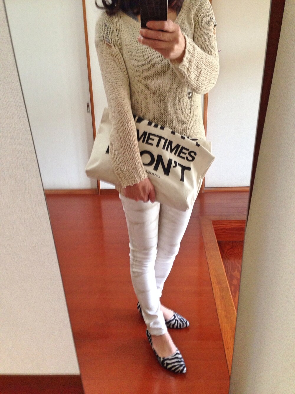 アウトレット行ってきます(^^) ニット INGNI パンツ GU パンプス ブランド不明 バッグ OSMOSIS(ノベルティ)