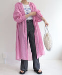 シャツワンピースはゆったりしているので中にTシャツを着ても響かないので、羽織としても使いやすいです◎ 薄手で麻が入ってるのでこれからの季節も使えるのも嬉しいポイント。 スリットが入っているのでワイドパンツとも合わせやすくレイヤードスタイルがお好きな方にも重宝しそうです。