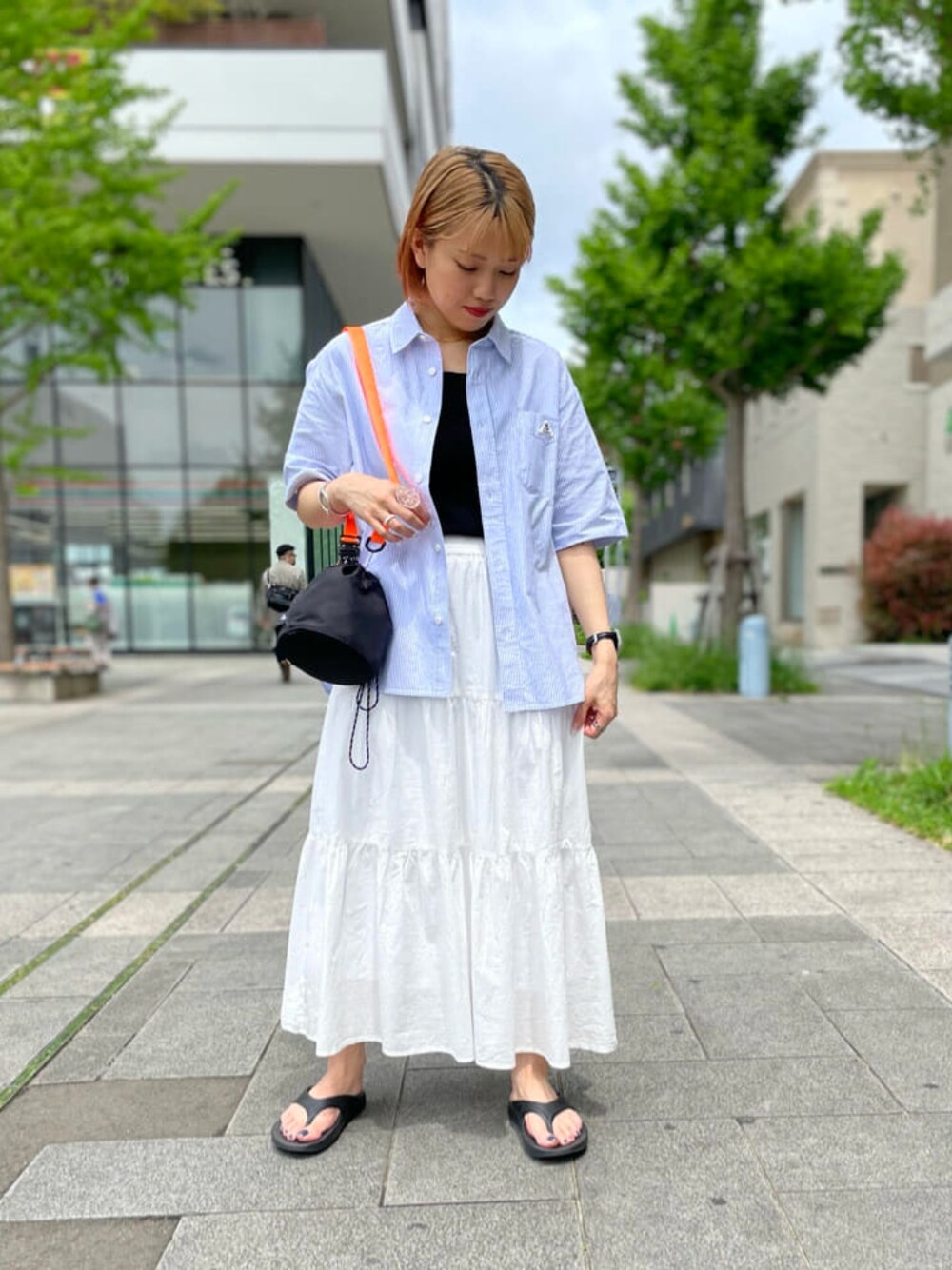 シャツはメンズライクなシルエットが可愛い! これからの時期使い回ししやすい一枚です。 ティアードスカートは綺麗めでもカジュアルでも合わせやすく、着回ししやすいアイテムです。 バックルベルトはカラーバリエーション豊富でお好みで色選んでいただけます!