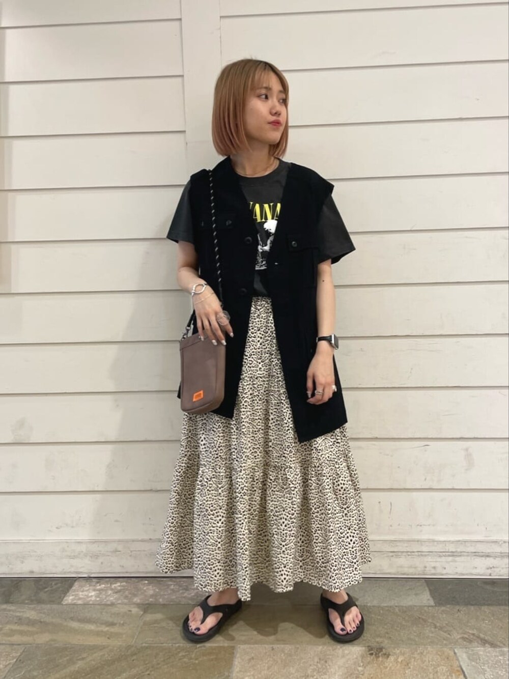 ミリタリーベストはトレンド感もあり着回しもしやすいので使いやすさ◎ OOFOS歩きやすくてすごくおすすめです、、!