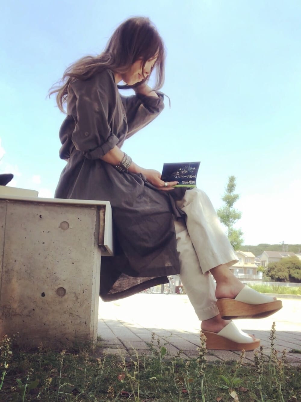 読書日和♩ UNIQLOのシャツワンピ☆ ウエストマークで^ ^