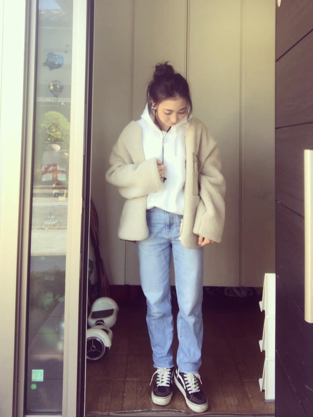パーカーとボアジャケット🐻 ラフ過ぎるラフコーデ😂