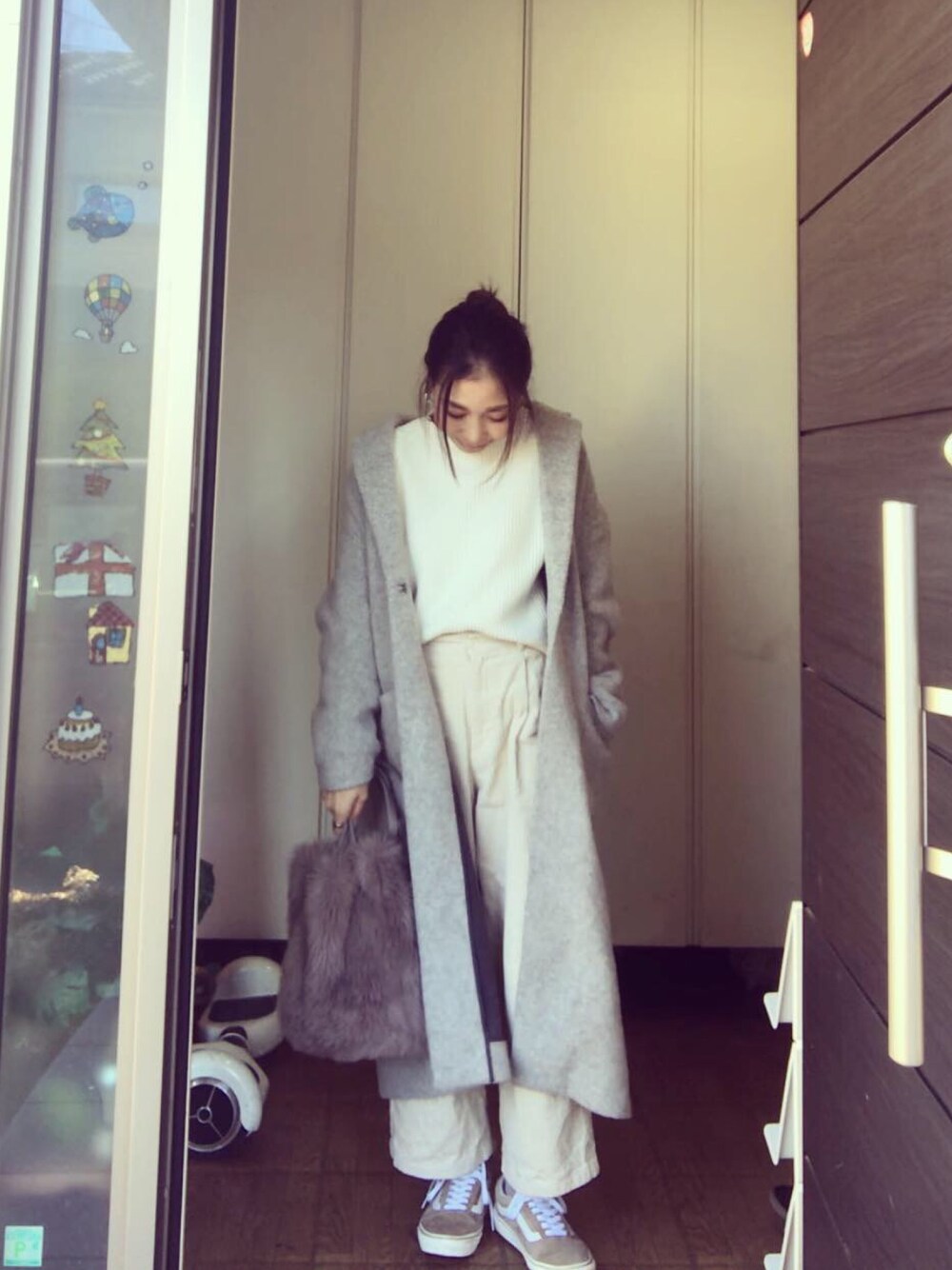 ホワイトコーデ 𓃟. 強風で乱れ髪🍃😂