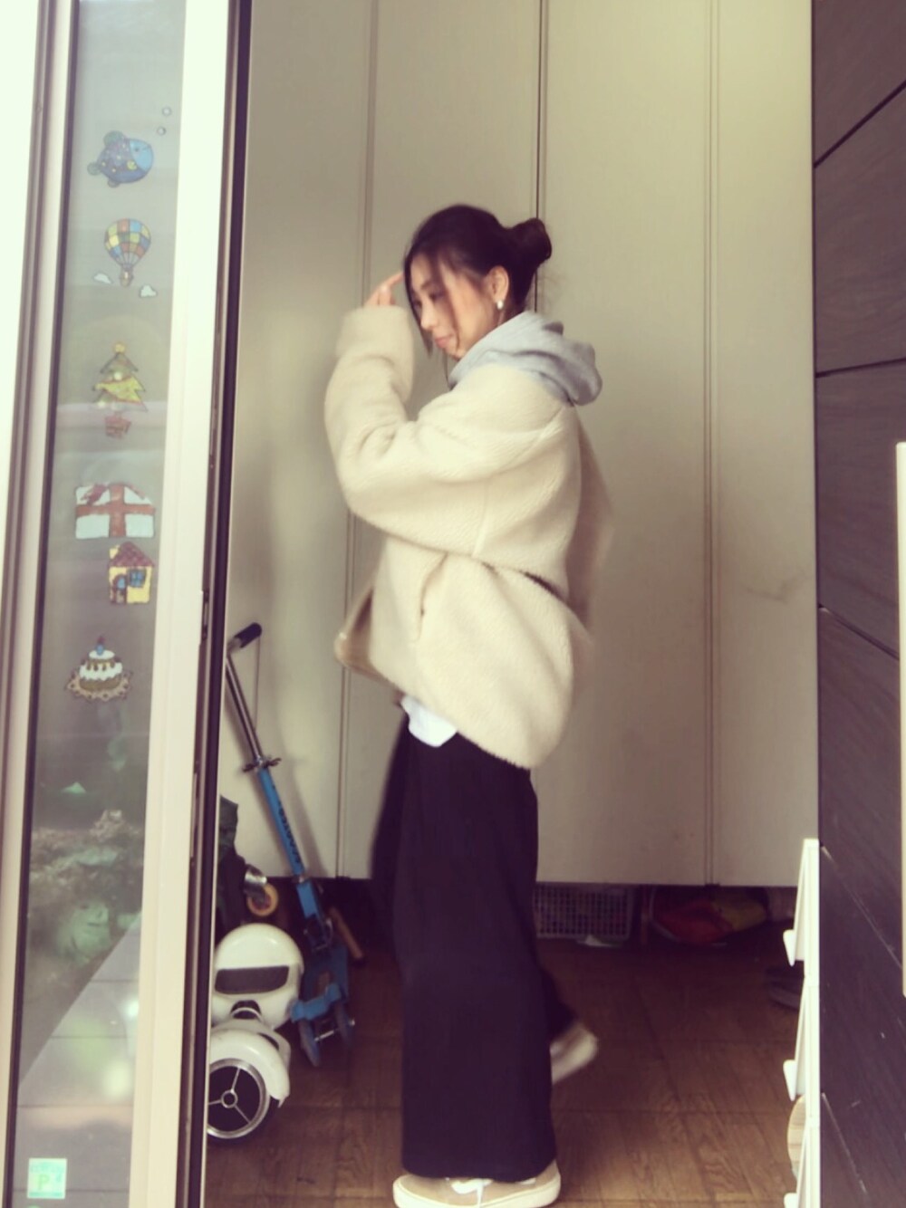 パーカーとリブニット パンツの 楽ちんコーデ☺️💦 最近パーカーばかりに目がいってしまう😂 guのパーカーはプチプラなのに フード立ちも良くて♡使えそうです♩