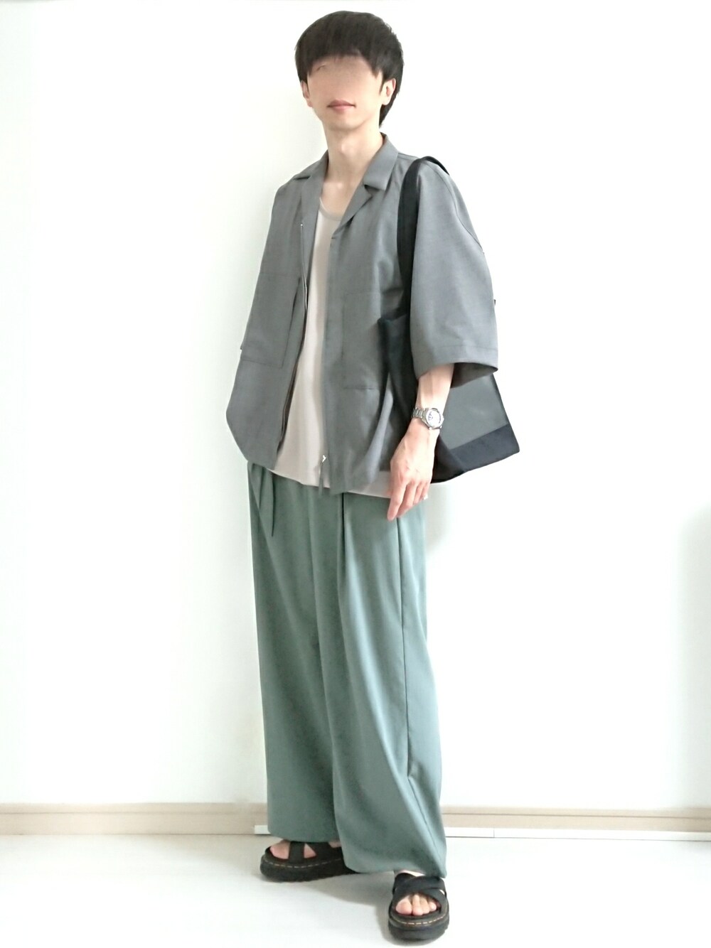 tops : LIDNM inner : Casper John pants : In fortis bag : KUUUPY shoes : Dr.Martens 2年前のLIDNMシャツアウターを今頃GET😄 ZIPシャツ好きなんです! Casperのタンクトップ(グレー) 接触冷感で色味も良い! そしてロンのグリーンパンツは 裾上げして丁度良くなった👍