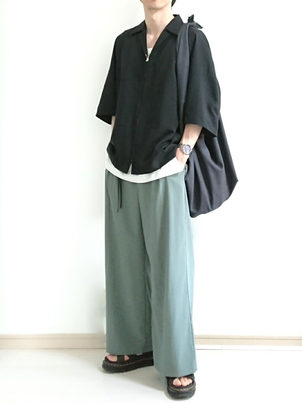 フリフリのサンダル「Dr.Martens (ドクターマーチン) / 厚底 レザーサンダル VOSS II SANDAL 26799001」を使ったコーディネート