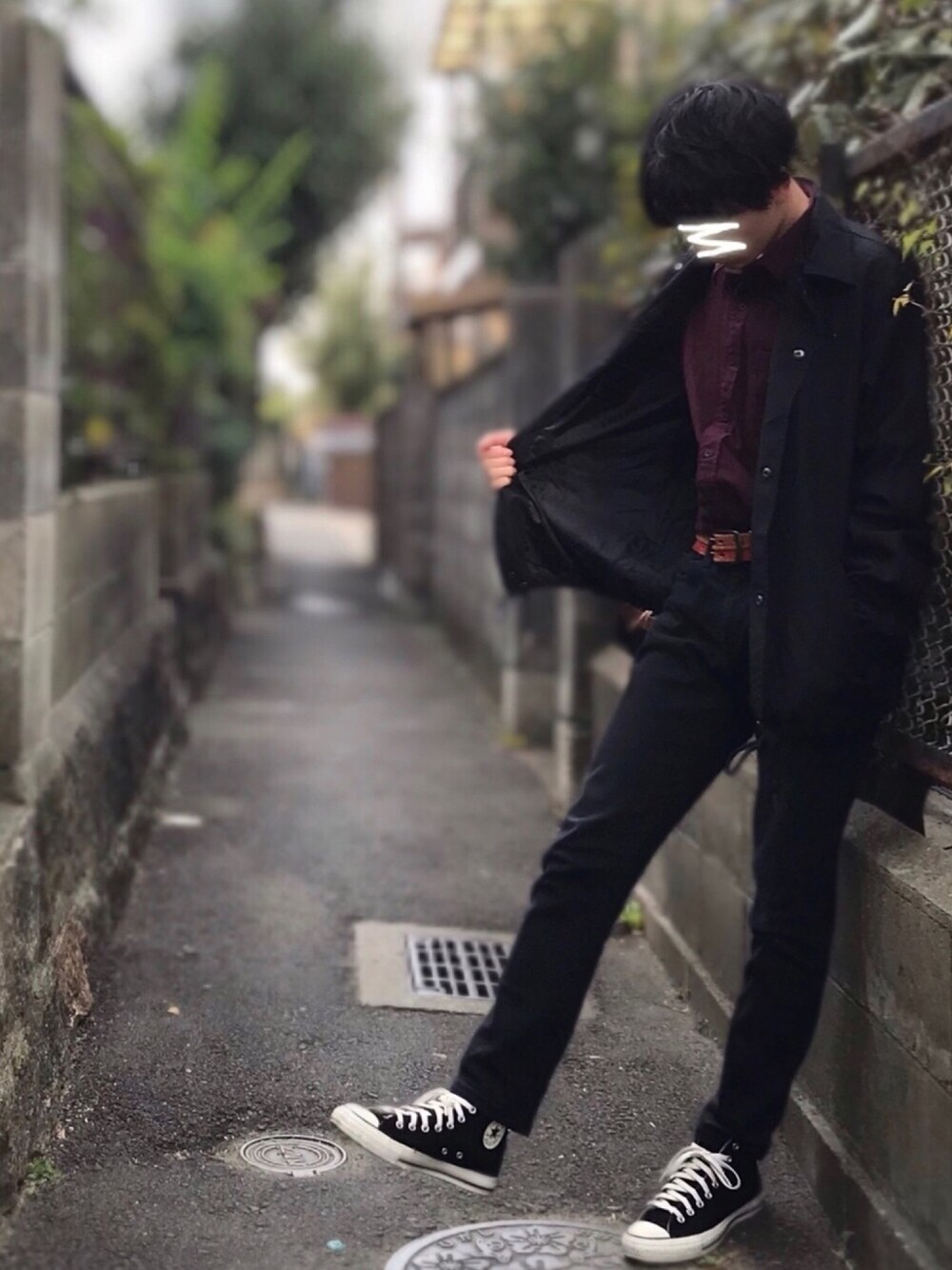 ブラックコーデ✖︎ワインレッド !! あんまり黒が似合う方ではないのであまり着ないけど着てみました😎 明るめ目の服の方が個人的には好きなのですが、たまにはいいかも‥