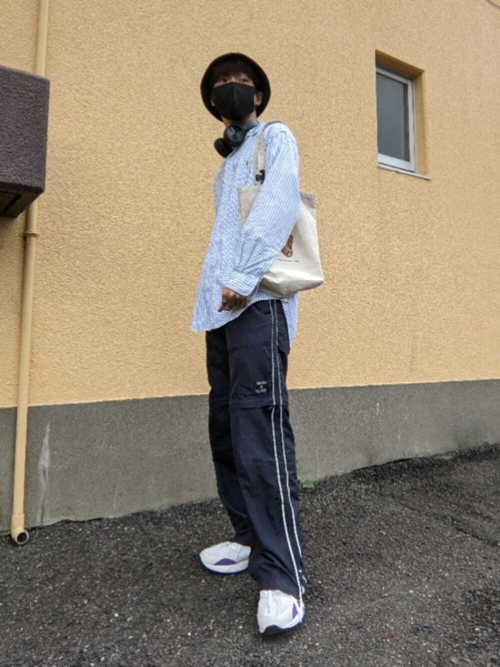 ライトブルー❎ネイビー ご覧頂きありがとうございます🎼✨ ブルー系の上下を使ったストリートコーデを組みました🏄♂️ パンツのサイドジップを上げるとフレア調に出来るのでお気に入りです🔥