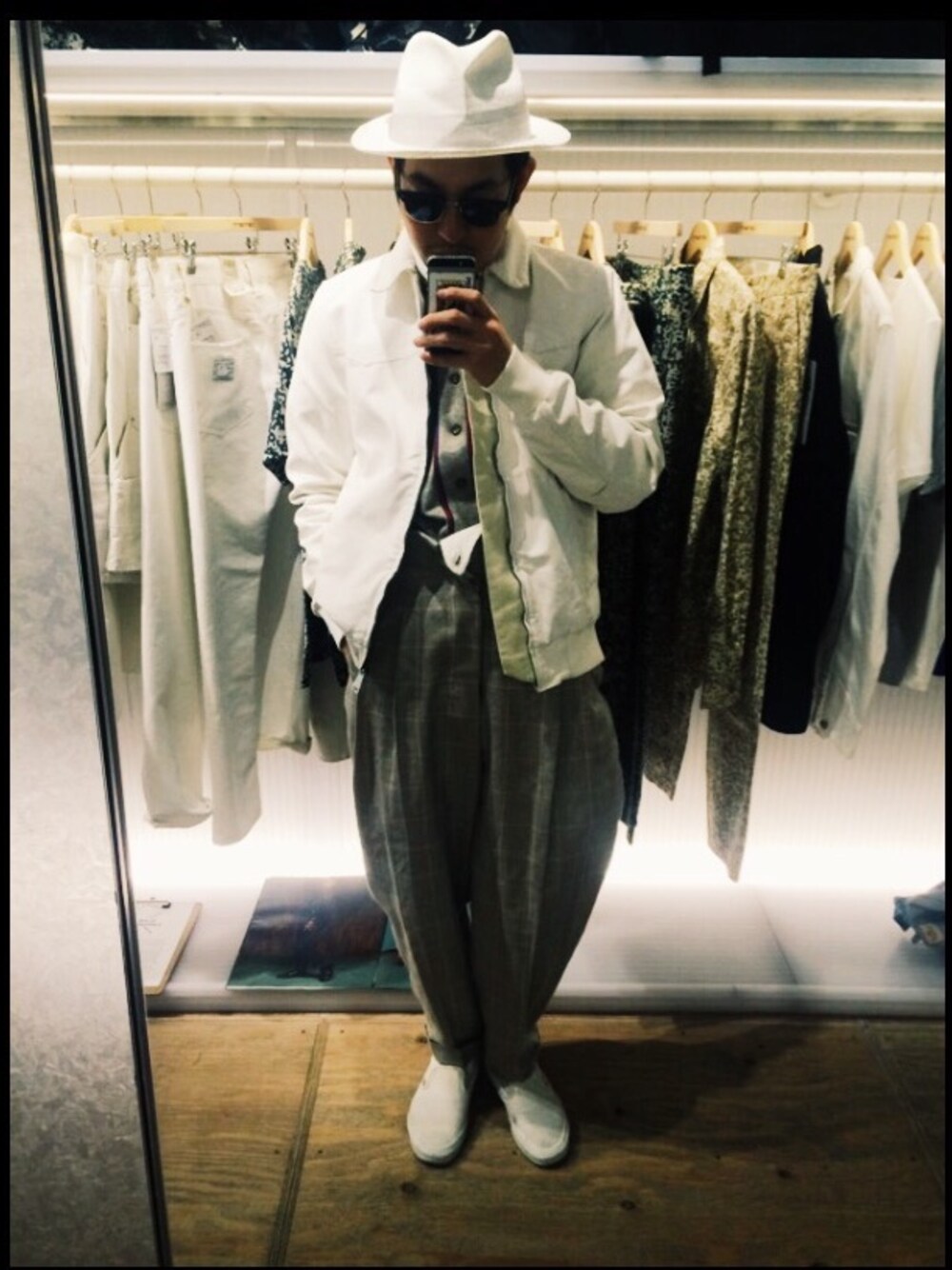初投稿です。 今回はslam jam×carhartt コラボブルゾンを主役にしたコーディネイトをさせていただきました。 ホワイトのハットにホワイトのブルゾン、ホワイトのシャツにブラックとブラウンのレジメンタルタイを締めベージュのハイウエストスラックスをタックインしてアイウェアにはb&l のraybanで品とGENTLEMANな雰囲気を意識しました。 足元はOLDVANS、インナーにはベストの代わりにvintageのベースボールシャツをチョイスすることで程よい遊び心と抜け感を出したコーディネイトになっています。