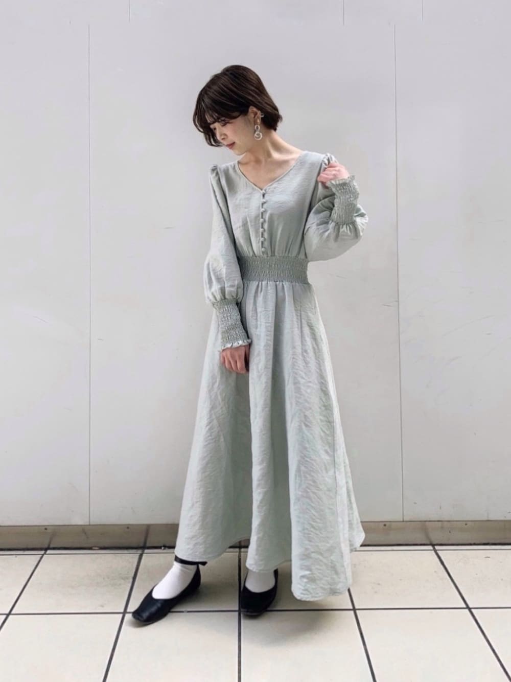 FREE’S MART STAFF(FREE'S MART HEAD OFFICE)のワンピース「ウエストシャーリングVネックワンピース」を使ったコーディネート