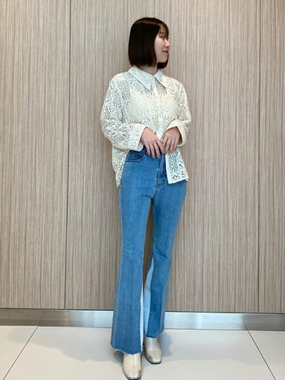 ************************* 身長:165cm/骨格:ストレート パーソナルカラー:イエベ春/普段サイズ:M 【Instagram】@__aym30_ ぜひフォローしてください☺!************************* コーデpoint サイドシャツインでトレンド感あるスタイルに!! ・1313110013 ・クロシェレースシャツ ・サイズ感:お尻隠れるゆったりした丈感 ・素材・着心地:生地がしっかりしていて◎ ・1313130014 ・三角パネルフレアデニムパンツ ・着用サイズ:M ・サイズ感:足首隠れる長めの丈 ・素材・着心地:柔らかく着心地抜群 ・1313160026 ・カップ付きキャミソール ・着用サイズ:FR ・素材・着心地:カップ付きなので楽です!