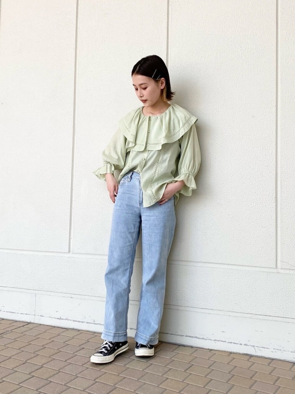 miko.(FREE'SMART あべのキューズモール)のデニムパンツ「【Sシリーズ対応】◇ベーシックワイドデニムパンツ」を使ったコーディネート