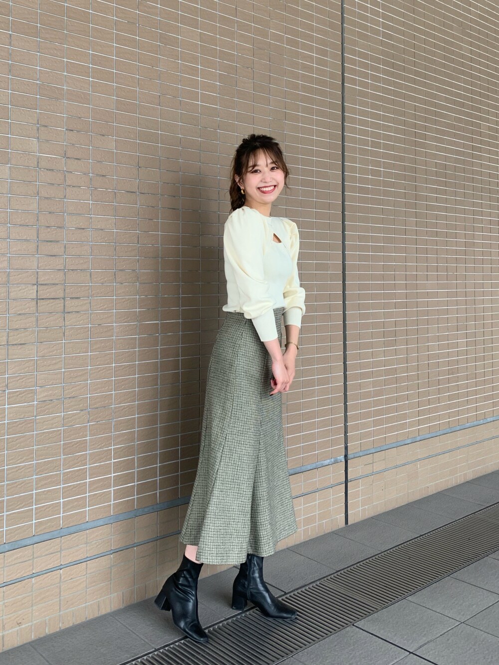 freesnatsukiのスカート「【インフルエンサー森下愛里沙さんレコメンド / Sシリーズ対応】◆ツィードチェックナロースカート」を使ったコーディネート