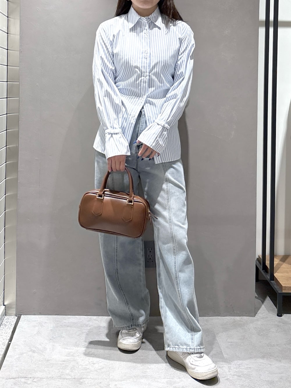 骨格:ウェーブ パーソナルカラー:イエベ 普段サイズ:M ************************* ・ブラウス(サイズ:FR/カラー:ブルーストライプ) ウエスト後ろにレースアップが入っていてウエストスッキリきていただける可愛いシャツです💓 ・デニム(サイズ:FR/カラー:ライトブルー) ストレートワイドシルエットのデニム。センターライン入っているので脚長効果があります☘️