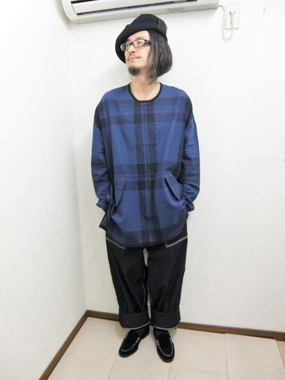 久しぶりのWEARアップ ゆったりシルエット上下を深みのあるブルー基調で。 インディゴは生デニム 洗わないで穿きこみたいです トップスのビッグ感はstofらしく ドロップした肩で大きなチェックが魅力的 シューズと帽子は黒 シューズはヌバック、帽子は裏毛 素材感で黒を遊びました