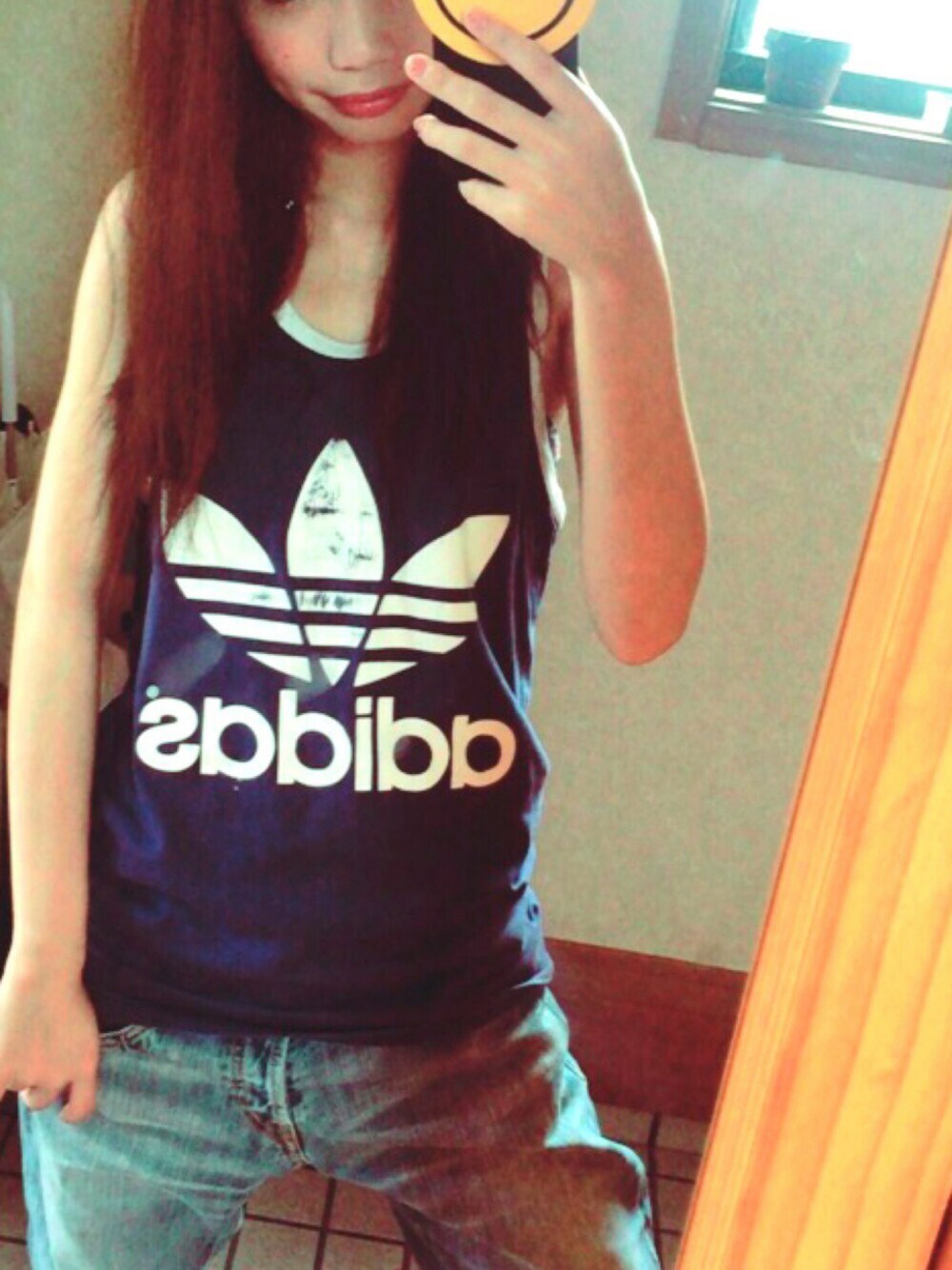 ヴィンテージショップで一目惚れした 80’sのタンクトップ👍🏾可愛い❤️ 両面プリントで後ろ姿もいい感じ🖐🏿😂💕