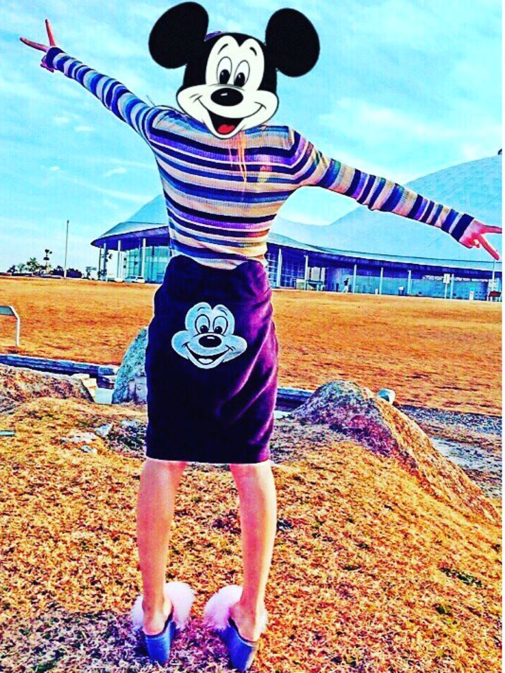過去のcodeも載せちゃう🎥💕 このスウェット素材のミッキースカート お気に入り😆ミッキーの耳がついてる☝🏾️