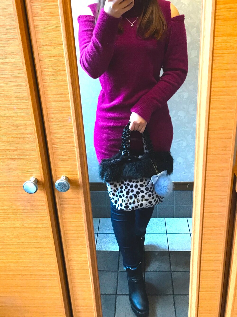 にゃんちゆのワンピース「ショルダーオープンニットワンピース」を使ったコーディネート