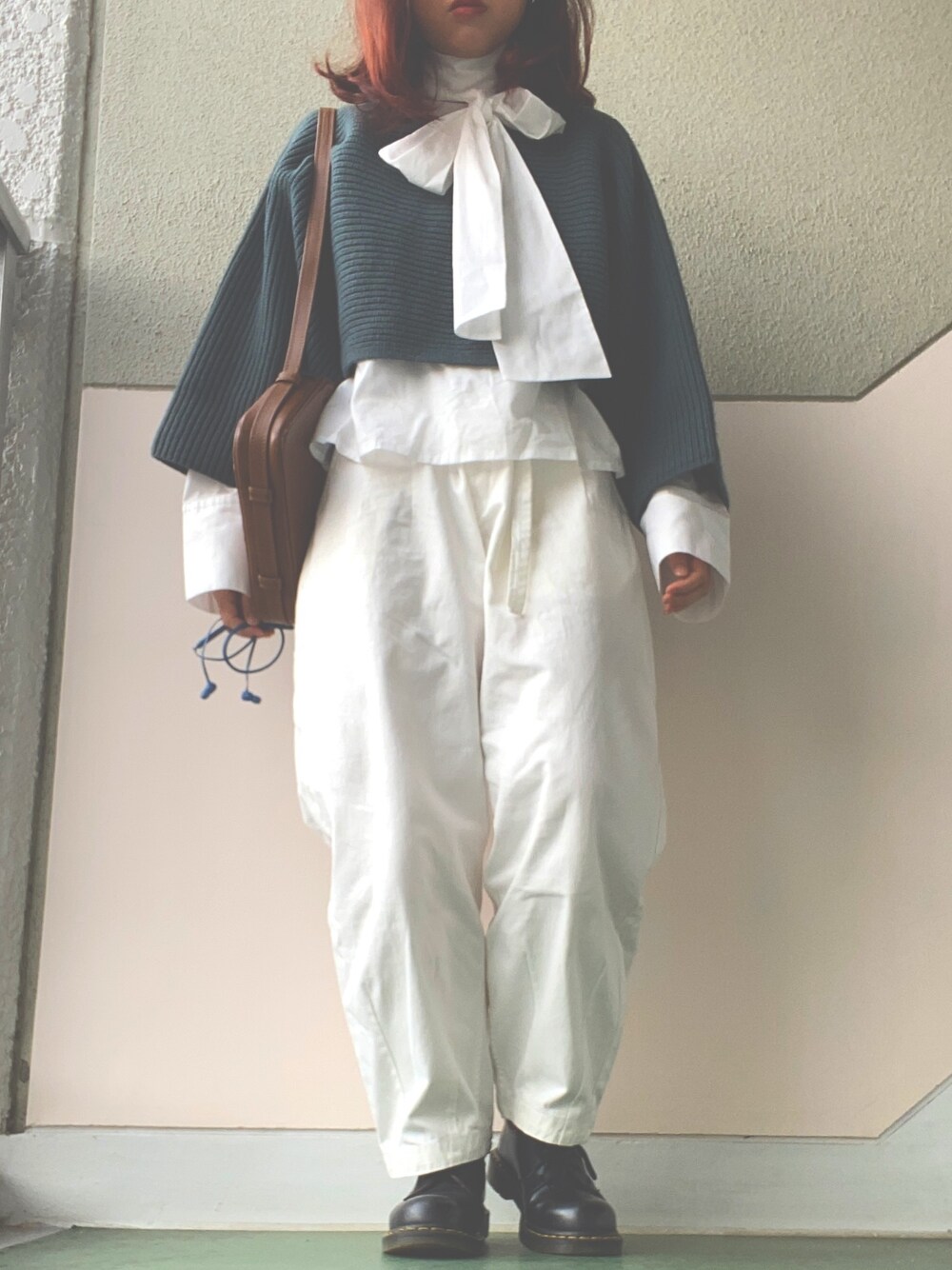 雨なのにマダマダさんの ブラウス着たさにホワイトコーデ。 髪色赤にしたので みどりとか白が着たくなる👗