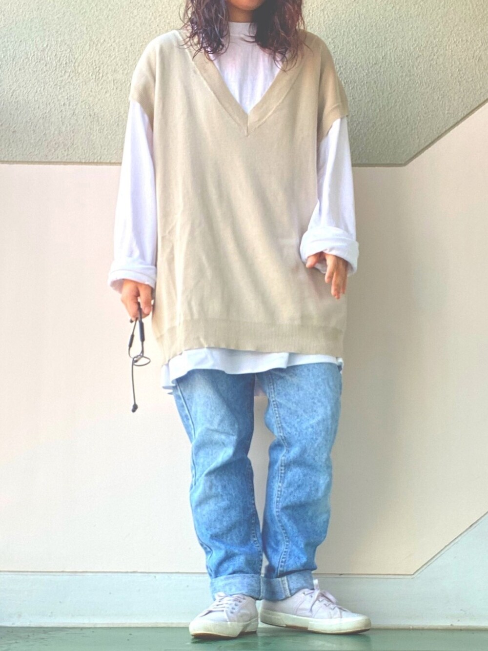 陽のベスト「オーバーシルエットベスト」を使ったコーディネート
