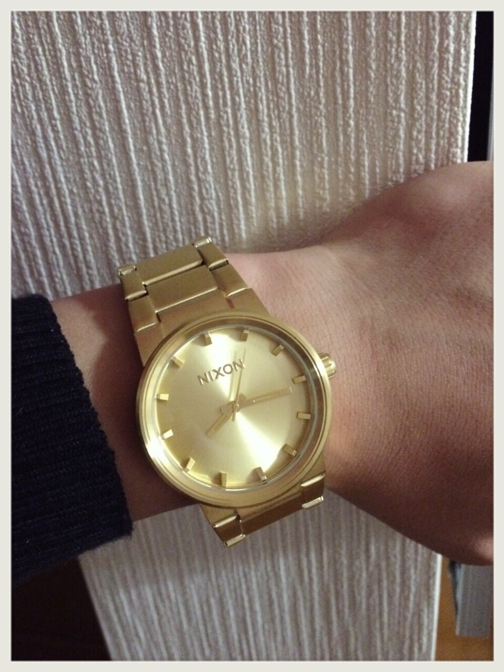 皆様、クリスマスいかがお過ごしでしたか? 私はやっと注文してたNIXONの時計が届いたのとの連絡をうけさっそく受け取って参ったー(≧∇≦) やばすやばすやばす! 着け心地も存在感も抜群です( ̄▽ ̄) イィ買い物したなぁー 小窓は初代腕時計のゔぁがり〜さんです( ^ω^ ) こちらもゴールドw 最初にこれを買った時なんか大人になった気がしたのを覚えてますwww