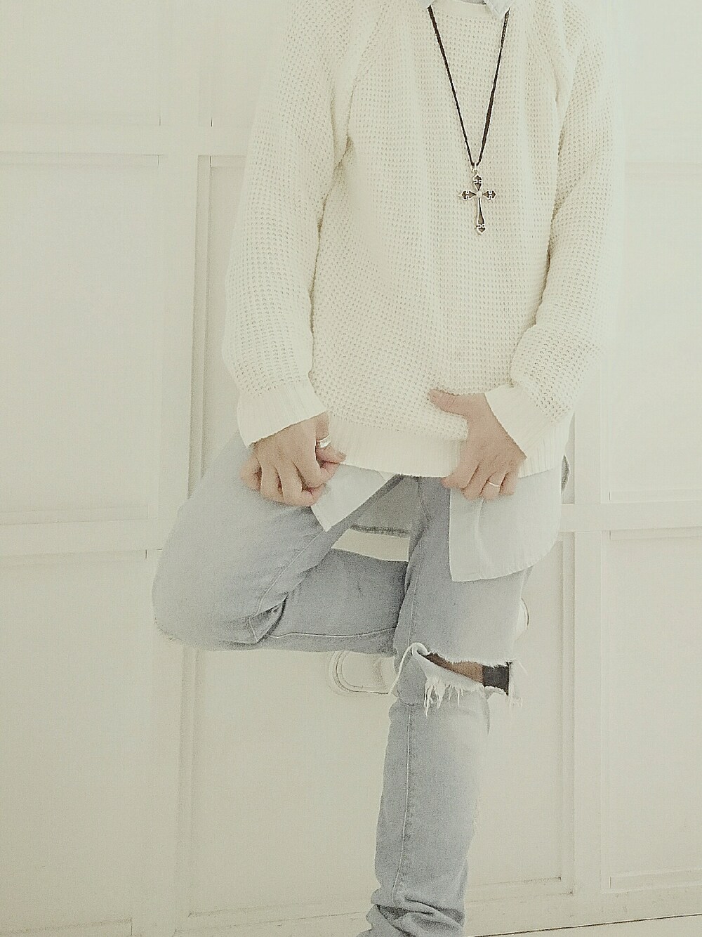#白ニット × #デニム 今日寒かったからニット登場 . デニムオンデニムの上に白ニットにして 優しい色でまとめて靴も写ってないけど 白で合わせたよ #knit → #GU #shirt → #dankeschon #denim → #bershka #boots → #Timberland