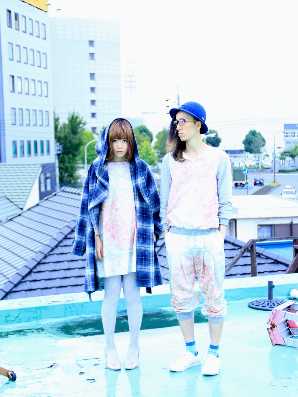 【left】 outer:tiit check coat Blue ¥43,000-(¥46,440-) one-piece:ATENOY ワンピース 絨毯柄 ¥15,000-(¥16,200-) accessory:ATENOY タイツ 壁柄 ¥4,800-(¥5,140-) 【right】 tops:ATENOY プルオーバー 絨毯柄 ¥16,000-(¥17,280-) bottoms:ATENOY リブパンツ 絨毯柄 ¥18,000-(¥19,440-) hat:Birth BELL LINE HAT Blue (sold out) accessory:Dr.Franken Edison Glass Two-tone ¥16,800-(¥18,144-) sox:diddlediddle let's go sox Blue ¥2,000-(¥2,160-) その他、モデル私物 model:(L) いちこ, (R) FJ photo:shunsaku こちらのアイテムは、webshop でもご覧頂けます。 http://fronowhere-shop.info/