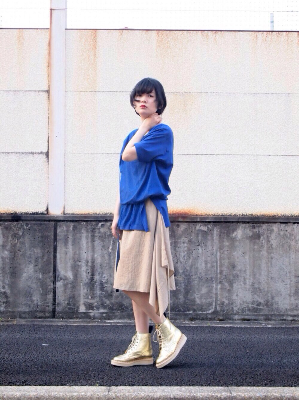 T-shirt:【rood】AIR スーパーロングT(Blue) skirt:【3tsui】ラップスカート(Beige)sold out shoes:【Luciole_jean pierre】wingtip boots(Gold) photo:FJ model:いちこ こちらのアイテムはweb shopでもご覧頂けます。 http://fronowhere-shop.info/ (プロフィール欄URL記載あり。)