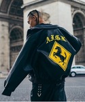 youkoのライダースジャケット「A'GEM/9 × .kom『A FEW GOOD KIDS/ア フュー グッド キッズ』RACING LEATHER JACKET/レーシング フェイクレザージャケット」を使ったコーディネート