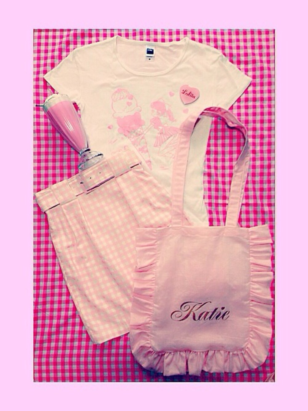 去年の夏に販売したわたしのTシャツと、ギンガムチェックのスカートを組み合わせた格好が好きでした💗 季節外れですみません…笑