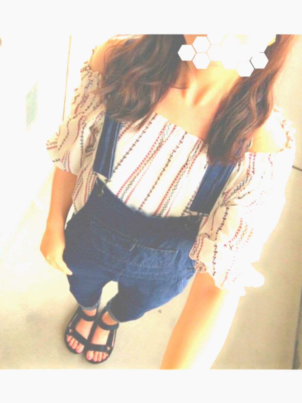 ちょっと肌見せに抵抗があったのですが、 サロペットでうまいことカバーできました🙆💜