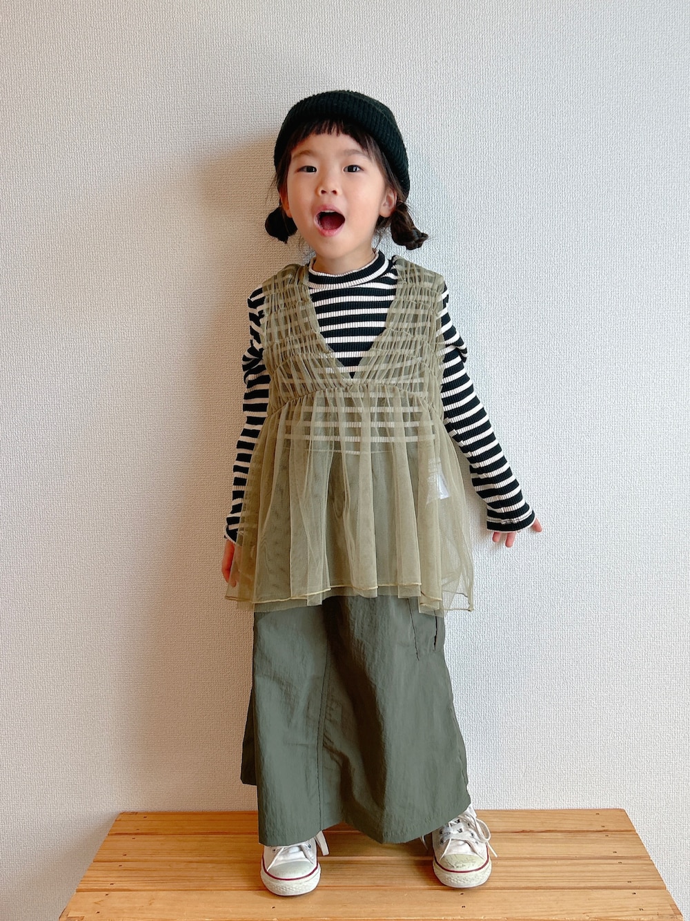 ふうのチュニック「【新色追加】【KIDS】シャーリングチュール2WAYチュニック」を使ったコーディネート