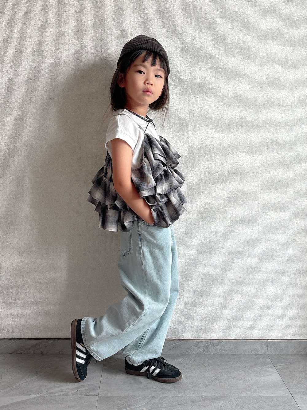 ⊿⁂LOWRYS FARM KIDS⊿⁂ ≫≫…≫≫…≫≫…≫≫…≫≫…≫≫…≫≫…≫≫…≫≫ 可愛いキャミ♡♡♡ 今から着られるし秋にはインナーに何入れるか ワクワクします♥️♥️♥️ 同柄のチェックシャツも展開してて そのシャツをインナーにしても可愛いっっ!! 今回は淡色デニムで 夏仕様のコーディネート組んでみました✨