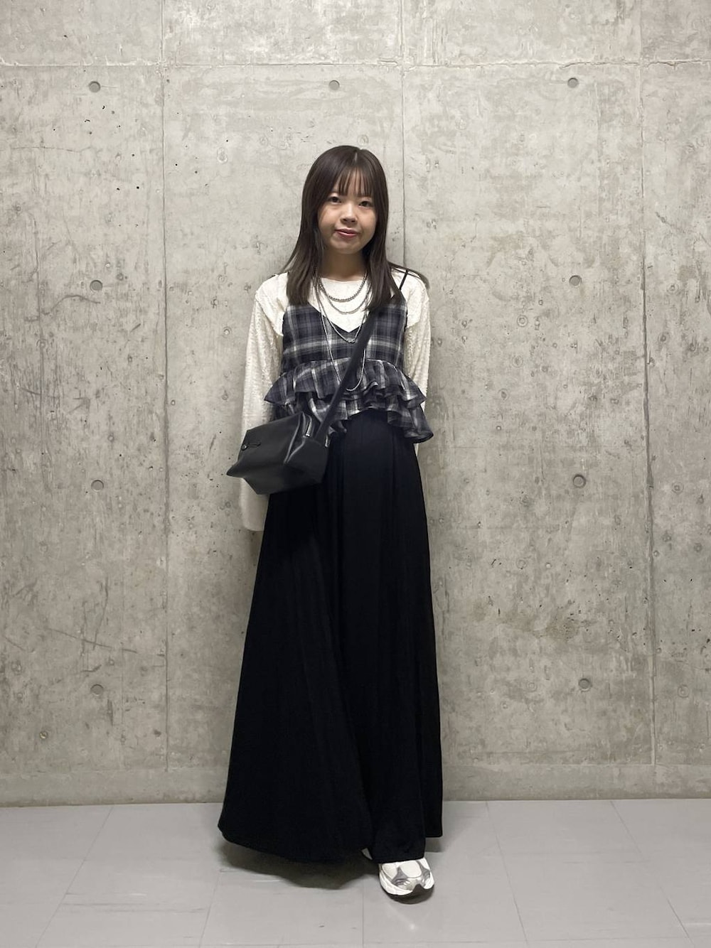ご覧いただきありがとうございます♡ スカートはテロっとした素材感で履き心地ばつぐんです! 155cmでハイウエストめに履いてます!
