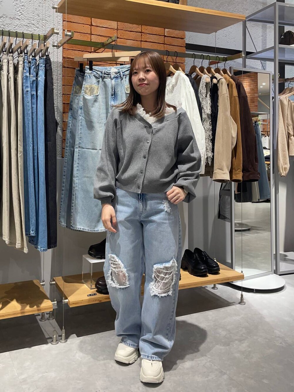 ご覧いただきありがとうございます♡ フリルのデザインがかわいいカーディガン✨ フリルは取り外し可能なので違った雰囲気でも着ていただけます!! レースデニムはハイウエストでウエスト周りスッキリ履いていただけます!