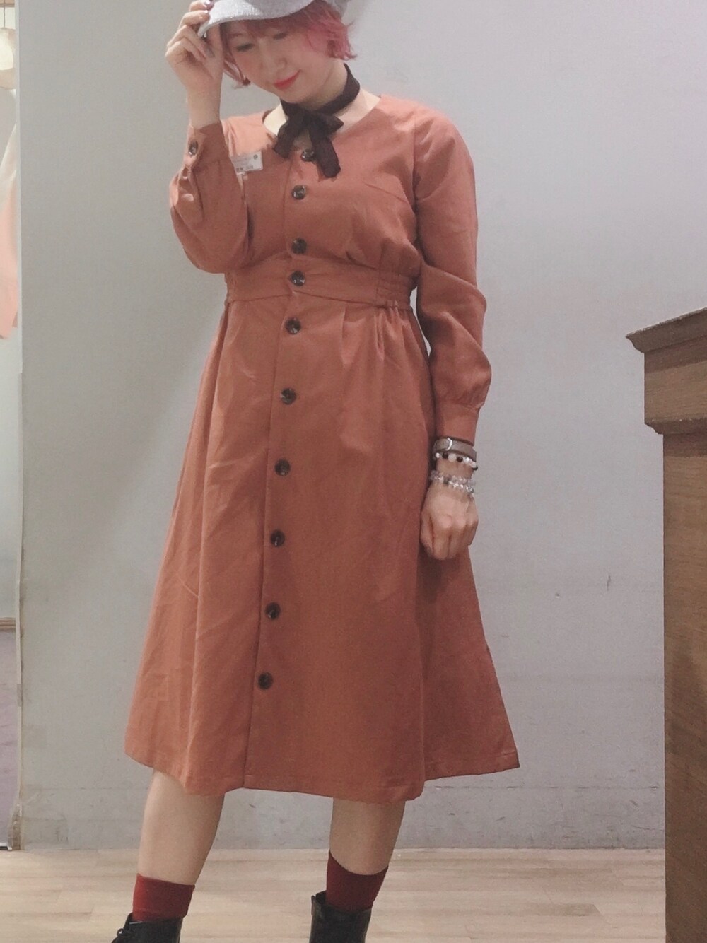 みんのワンピース「Vネック前開きワンピース*」を使ったコーディネート