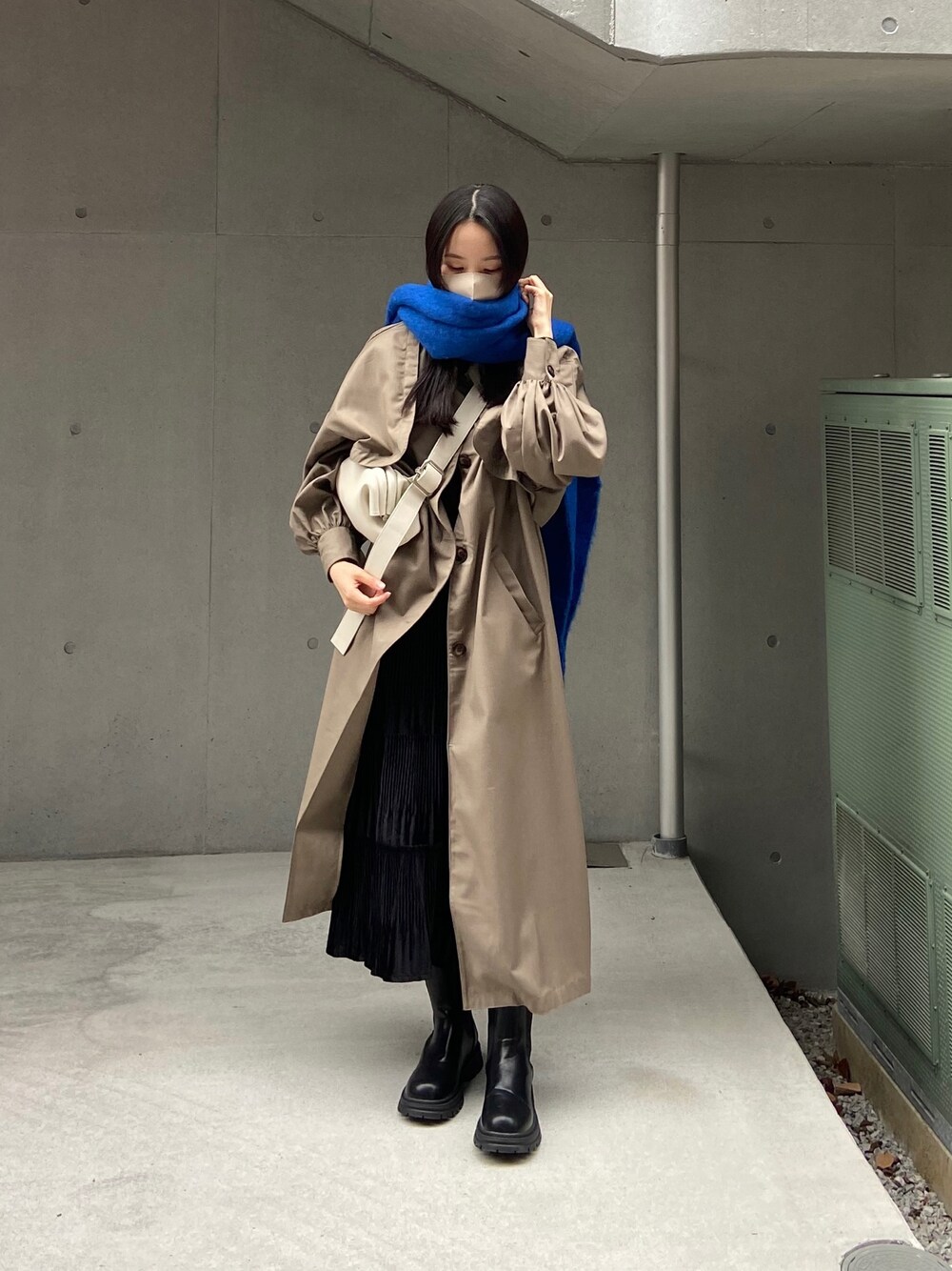 ➰ 落ち着いた色味のトレンチコートに クリアカラーのマフラーを 合わせてみました🦕 ☑︎PR item ECRIRE ツイルトレンチコート : このトレンチコートは 柔らかく張りのある生地で 落ち着いた色味なので かなりシックに着こなせます🌝 カラー名はグレーですが どちらかというとカーキ系です🦆 暗い色だけだと、 印象が薄くなってしまうので バッグやマフラーには コントラストが聞いた クリアなカラーを選びました 特に原色系のマフラーは トレンド感もあるし、 コーデの雰囲気がガラッと 変わるのでおすすめです➰