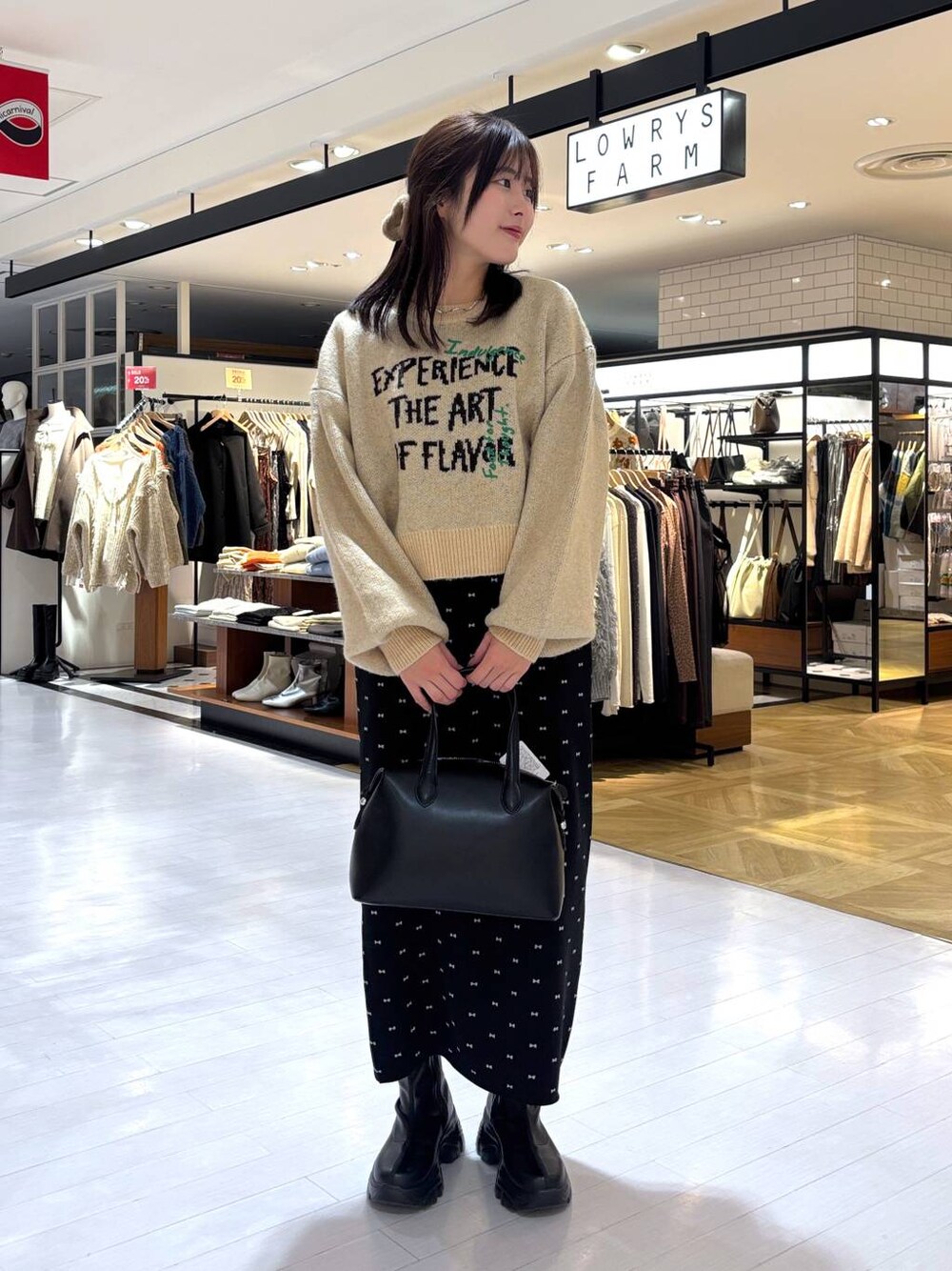 ✔カジュアルコーデ 袖にボリューム感があって可愛いショート丈ニットトップスに、ワンポイントアクセントのあるスカートでコーデを組んでいます🧤 全体的にボリューム感は抑えられているので、今のアウターを羽織る時期にも組みやすい洋服です✨️ アウターはショート丈でもロング丈でも似合います🙆♀️ 【トップス】 ニット素材なため、真冬まで暖かく着ていただけます! 触り心地もチクチクしません🙆♀️🤍 柄がカジュアルにしてくれるため、普段使いしやすいです❕ 【ボトムス】 見た目以上に伸縮性があり、日常使いしやすいです! デザインも可愛く派手すぎないため、大人っぽく着こなせます🤍