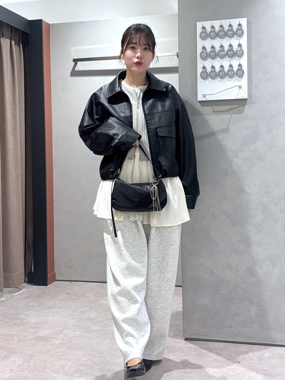 ✔甘めカジュアルコーデ シャーリングブラウスをレイヤード風に重ねて、オシャレに仕上げています🤍 色味に統一感を持たせることで、シンプルに大人っぽく見せました🌙 スウェットパンツが少しダボッと感出るアイテムなので、トップスはショート丈のものと合わせると相性抜群です🙆♀️✨️ よりきれいめに仕上げるために、小物類はブラックで統一感を出して、女性らしさが出るミュールパンプスを履いています!