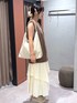 ✔大人フェミニン🤍✨️ 新作アイテムでコーデを組みました°・*:.。.☆ 去年も大人気だったシャギーベストは今年ブラウンカラーが登場してます🧋🤎 おしりまですっぽり隠れるので、形が出るボトムスと合わせても🙆♀️✨️