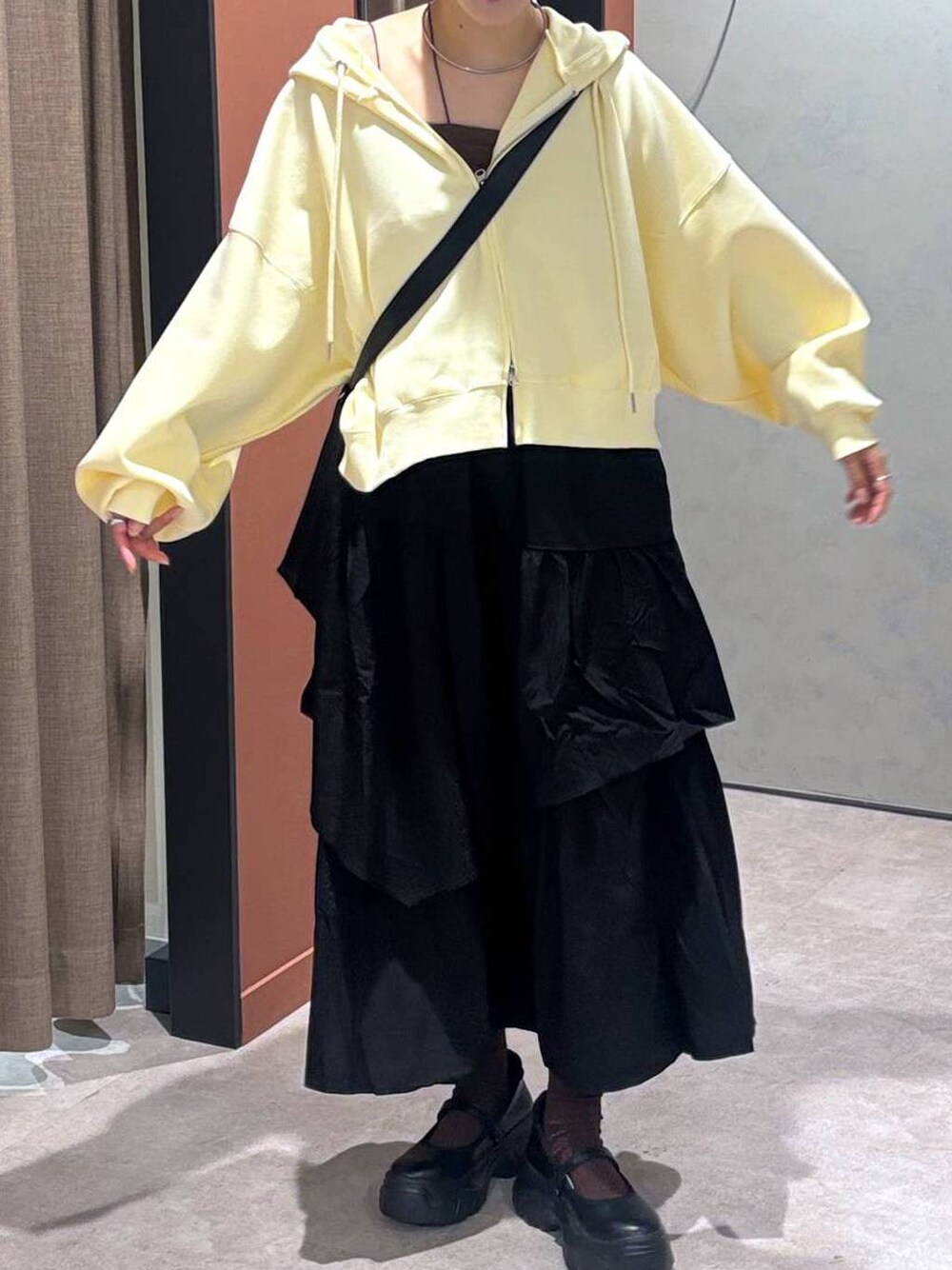 ✔甘めカジュアル🤍 去年大人気だったZIPショートフーディが、今年の秋も販売してます✨️ 私はイエロー推し💛🫶🏻 Wジップで抜け感が出せるのもポイント❕