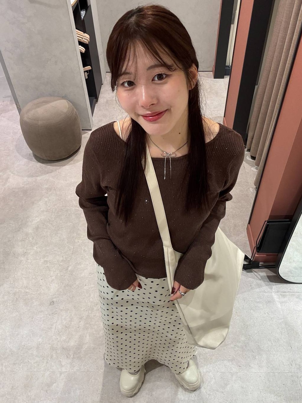 ✔きれいめコーデ🤍 今流行りのドット柄を使ってコーデを組みました🤍🖤 ドット柄スカートは、馴染みやすい柄感なため、日常使いもしやすくなっております🙆🏻♀️ ウエストもゴムになっていて、楽ちんスカートです⭐️ トップスは私もリアルバイしたアイテムで、写真では分かりずらいですが、スパンコールがふんだんに使われていて、本当に可愛いです🫶🏻♥️