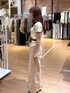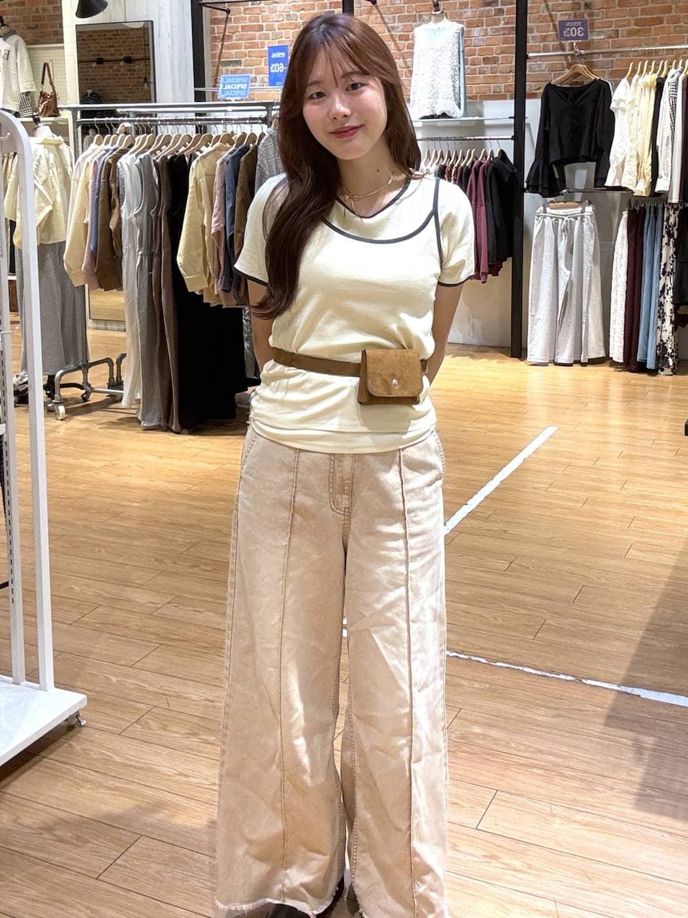 ✔甘めカジュアル🤍 最近入荷してきたトップスを着てみました~♡ 生地がとても柔らかくてノンストレスです🙆♀️ 少し小さめのサイズ感となっていますが、ピッタリしすぎないのもpoint☆ 今流行りのウエストマークを付けてスタイルアップしてます♡