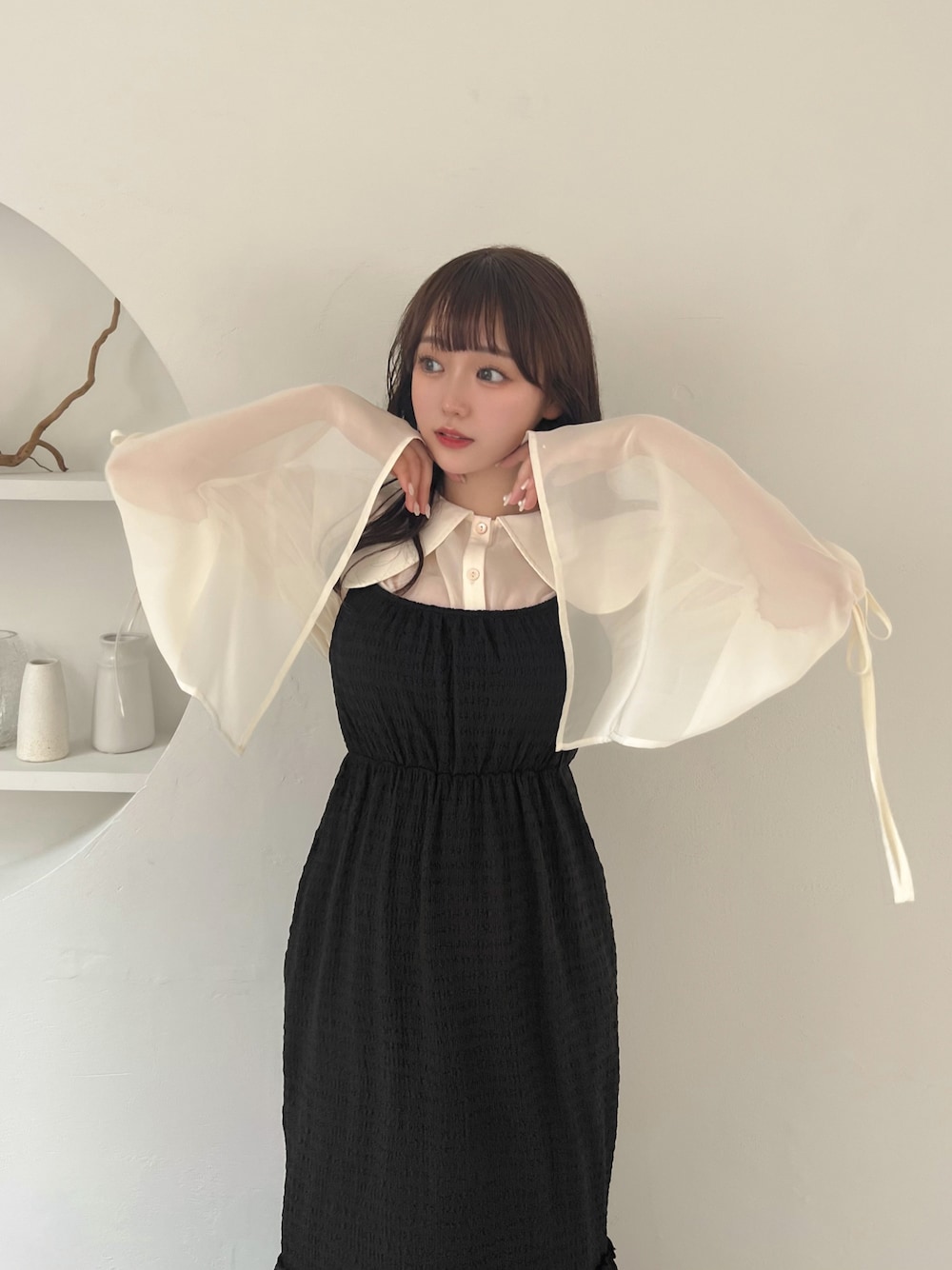 キャミワンピコーデ♡ デートならシアーシャツを外に羽織ってチラッとあざとく肌見せしたら絶対可愛い🫣🩷
