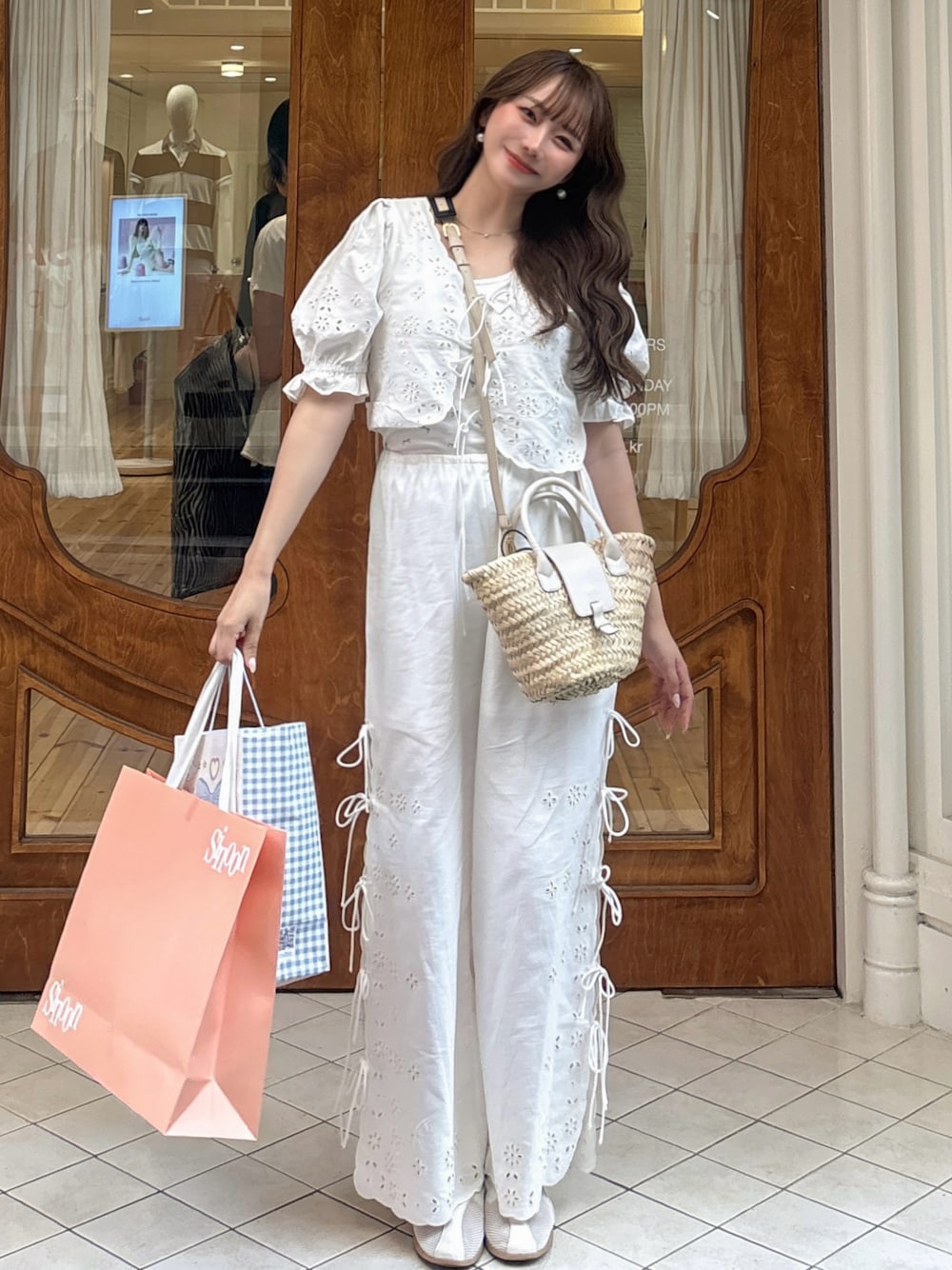 白濱楓雅🐚 fuchan_2003のシャツ/ブラウス「カットワーク刺繍リボンブラウス」を使ったコーディネート
