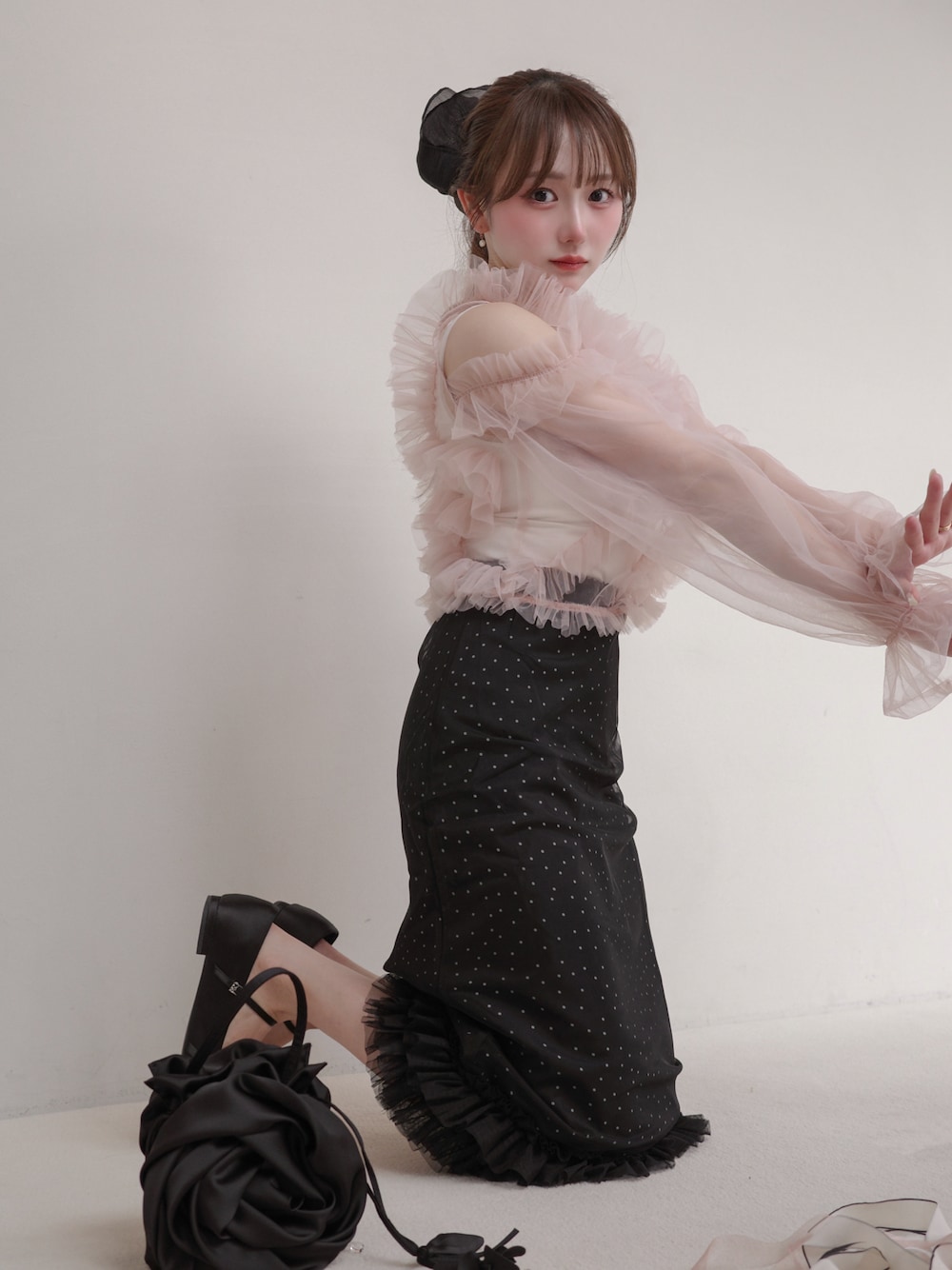 白濱楓雅🐚 fuchan_2003のスカート「チュールレイヤードドットタイトスカート」を使ったコーディネート