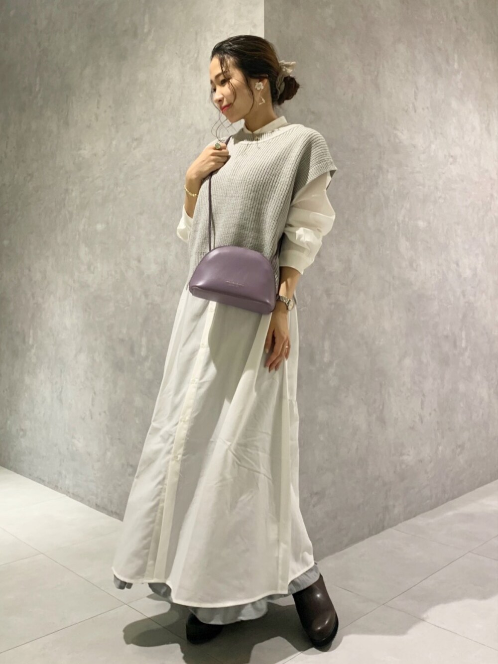 MAYA(ROPE' PICNIC ルミネ池袋)のシャツワンピース「ニットベストセットシャツワンピース」を使ったコーディネート