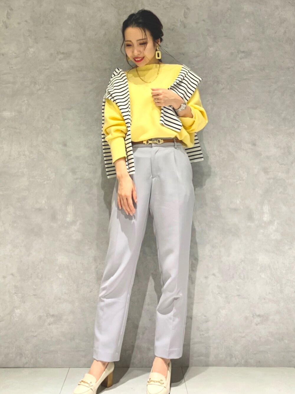 MAYAのニット/セーター「【WEB限定カラー:グレー,グリーン】マシュマロニット袖パールドルマン」を使ったコーディネート