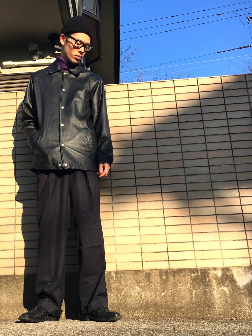 オールブラックス(紫少々)🍃ニット帽は新品ですが先が尖らないどんぐりみたいな形のを好んでます🍃トップスに着ているのはコーチジャケットですが全てレザーですラグラン仕様なので肩が落ちて雰囲気最高です🍃レザーコーチジャケットはlemonteaという古着屋で新品で作っていたものです、古着のシルエットを参考にしているので使いやすいです、しかもレザー🍃パンツはoldのラルフローレンのスラックスです🍃足元はvintageのchurch'sでレザーまとめてみました