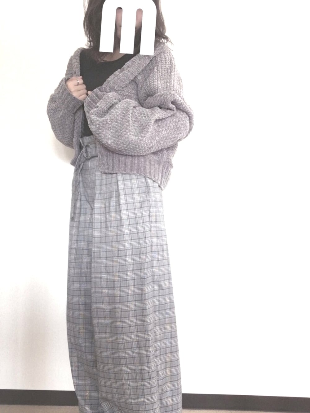 上下グレーコーデ . カーディガンのゆるい感じが可愛くて 何にでも合います🐰☁️ ショート丈カーディガン×ハイウエストガウチョパンツで スタイルアップ☁️